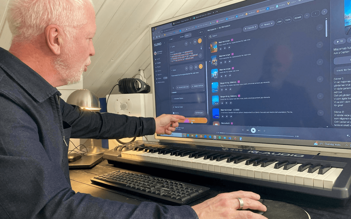 – Det hade jag kunnat göra men då skulle jag behöva hitta mixar och så är jag ingen studiemusiker så det här är med AI är ett väldigt bra hjälpmedel för mig.