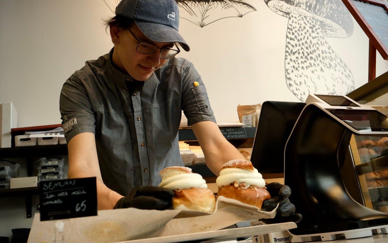 – Det har varit ett riktigt hårt tryck, säger Charlie Wiréen samtidigt som han langar förbokade semlor över disken.