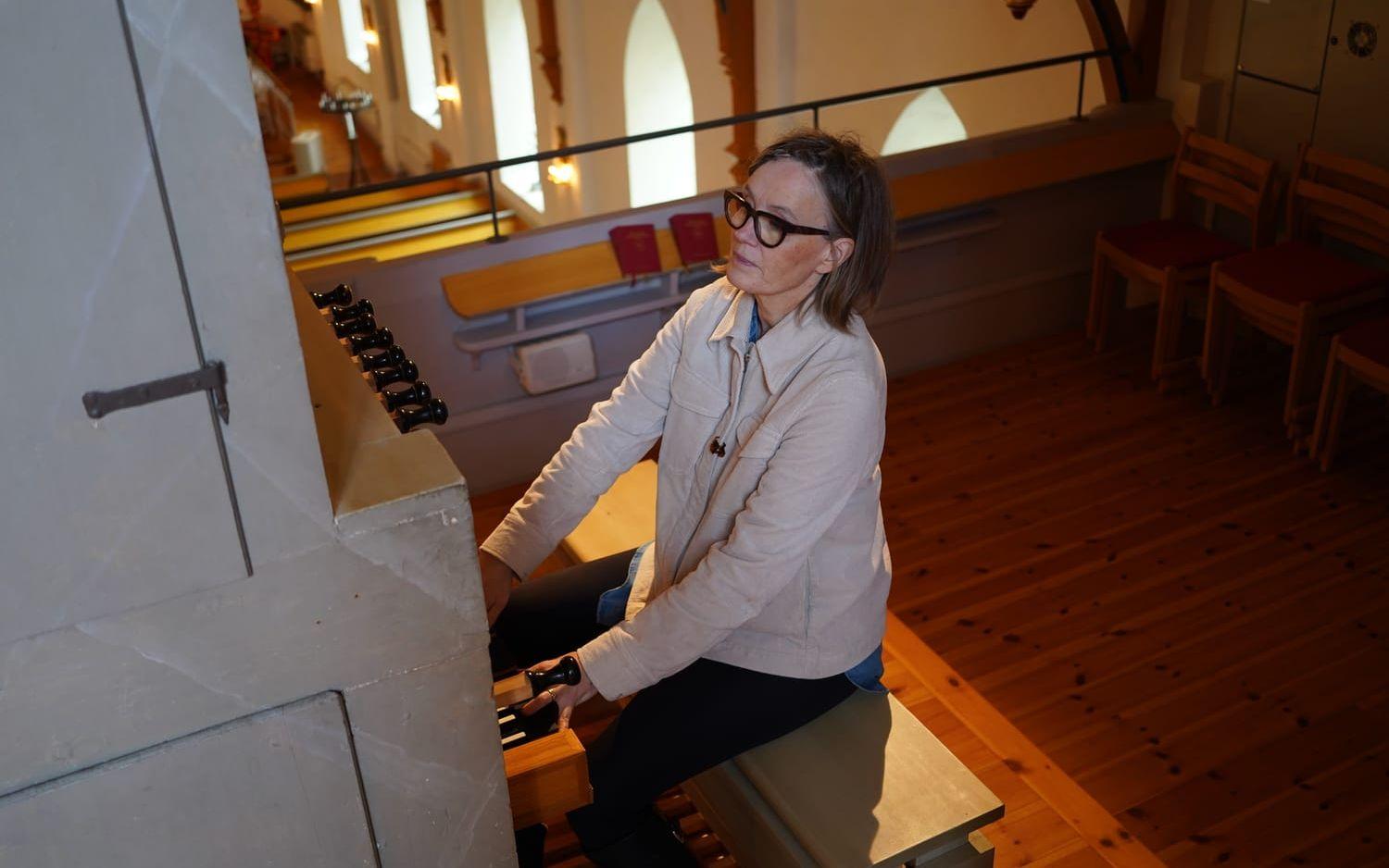 Sedan sätter Anna-Lena Nordberg sig för att spela. Hon är ingen nybörjare utan har jobbat som kyrkomusiker i 30 år och spelat på orglar i hela Sverige.