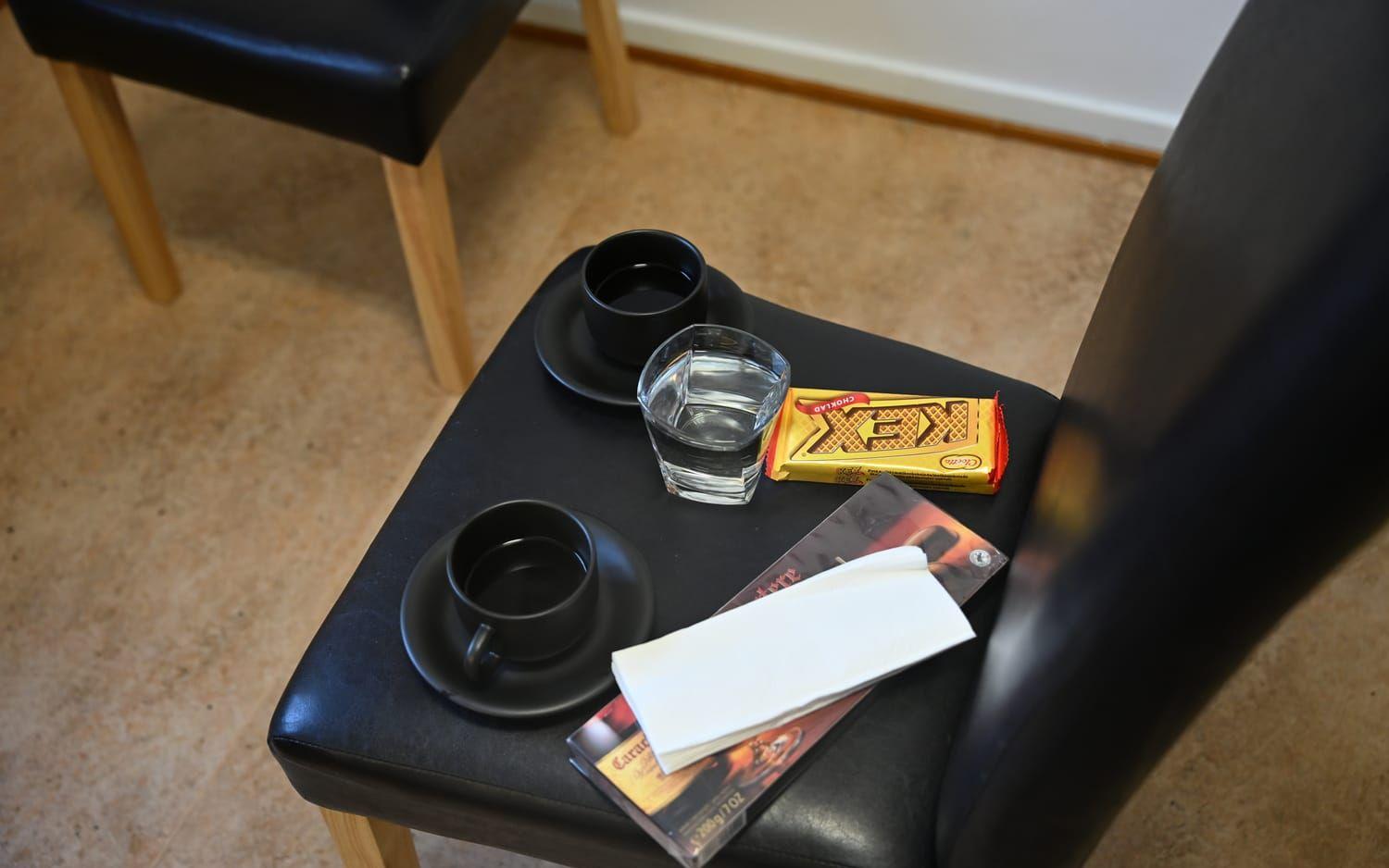 Där har Mushtaq Taleb Alobaidy ställt fram kaffekoppar på en stol och format två andra runt ett obefintligt bord. Han flyttade nyligen in, och väntar fortfarande på de flesta möbler. Men det som skulle flyttas från huset ett stenkast bort, fick han hjälp från Jonseredsbor med.