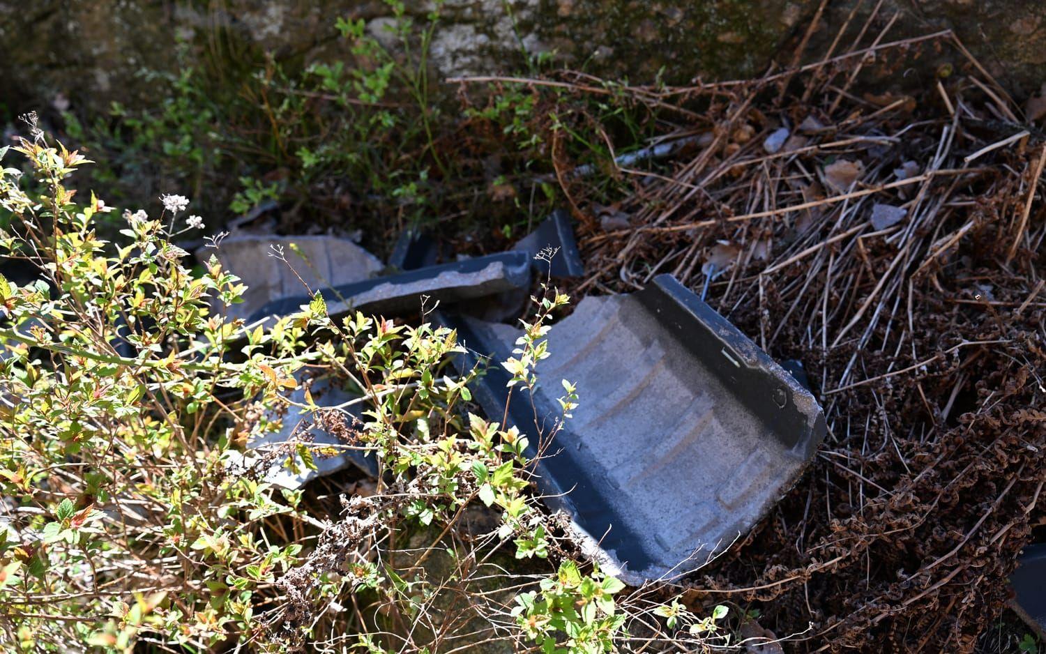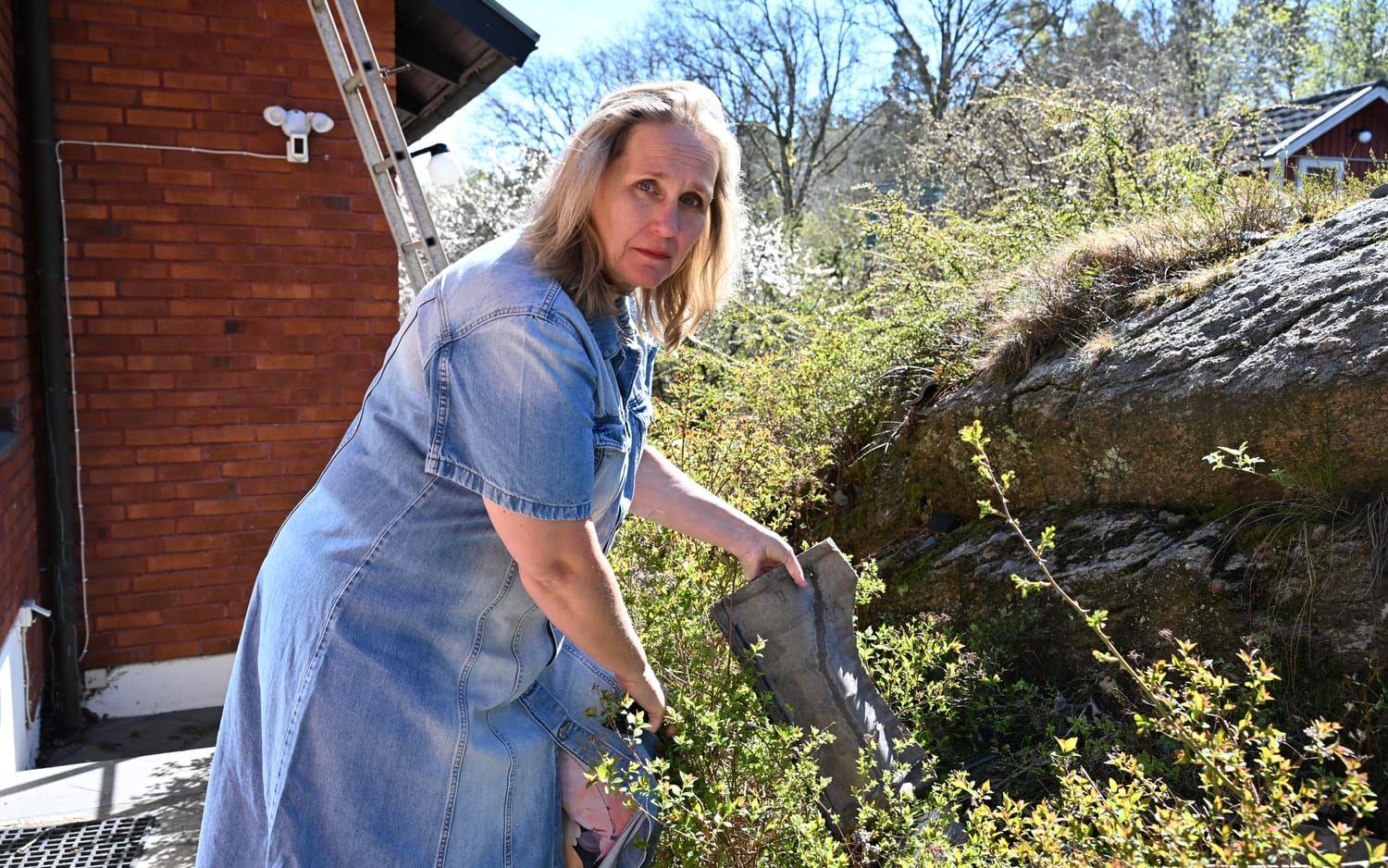 – När jag kom upp på baksidan såg jag alla takpannor som låg utspridda. Jag blev skärrad när jag såg förödelsen. Det var krossade takpannor överallt, säger Karin Vasen.