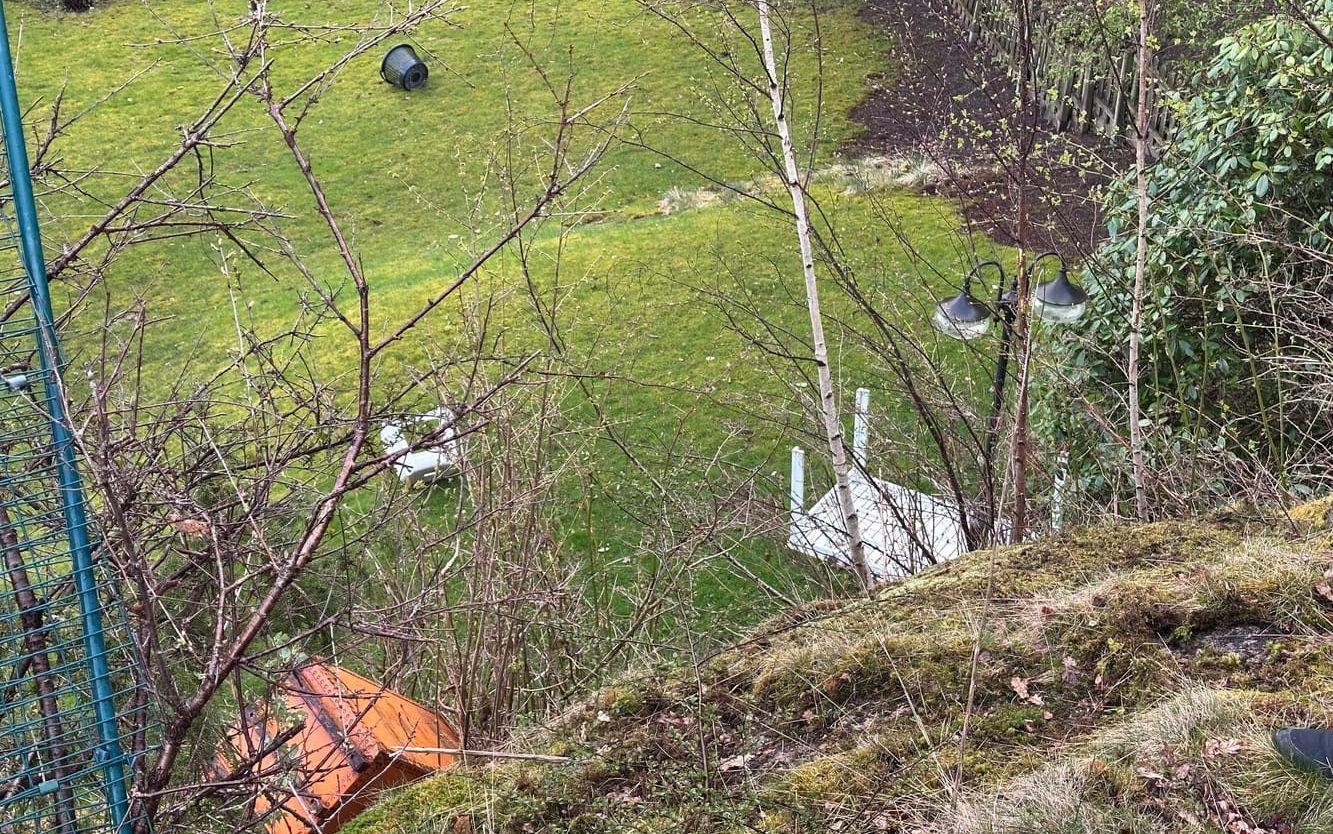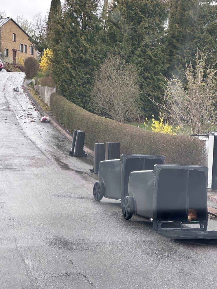 Hon gick ut och fick se att ett par krukor ramlat och soptunnan hade flugit iväg. Men tänkte inte mycket mer på det. En stund senare hörde hon från grannen Karin Vasen, som bor längst upp på samma gata.