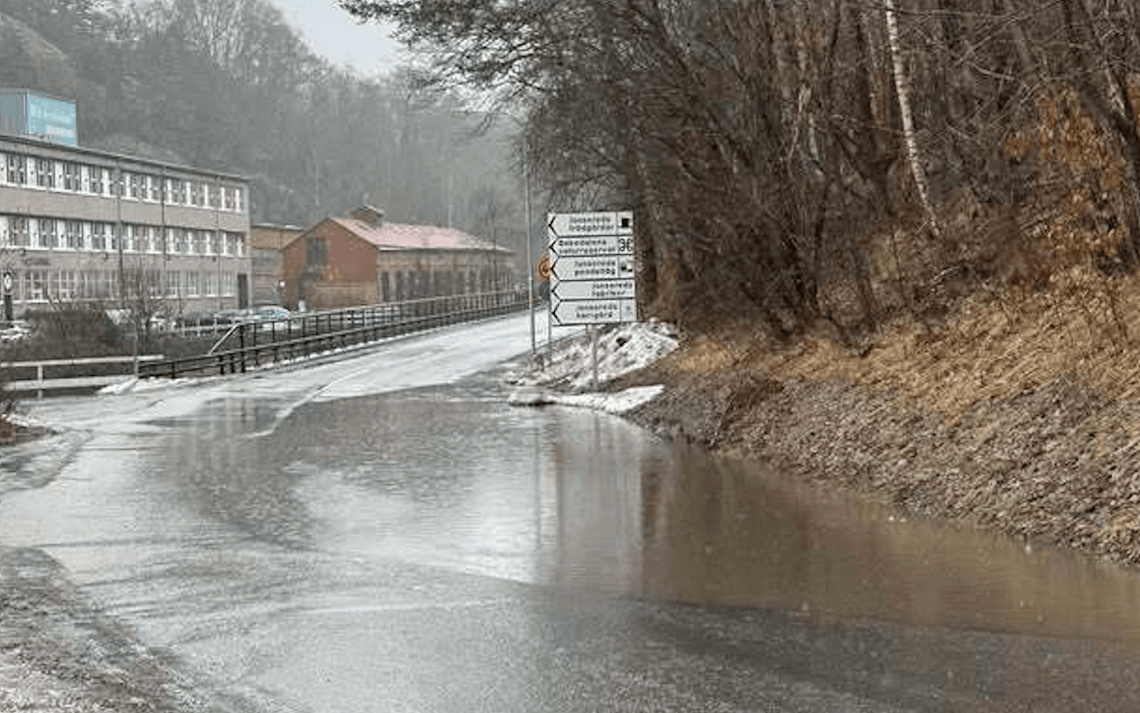 Att vattenansamlingen hamnar just vid överfarten, bron över till Jonsereds Fabriker, ser han också som extra besvärligt.