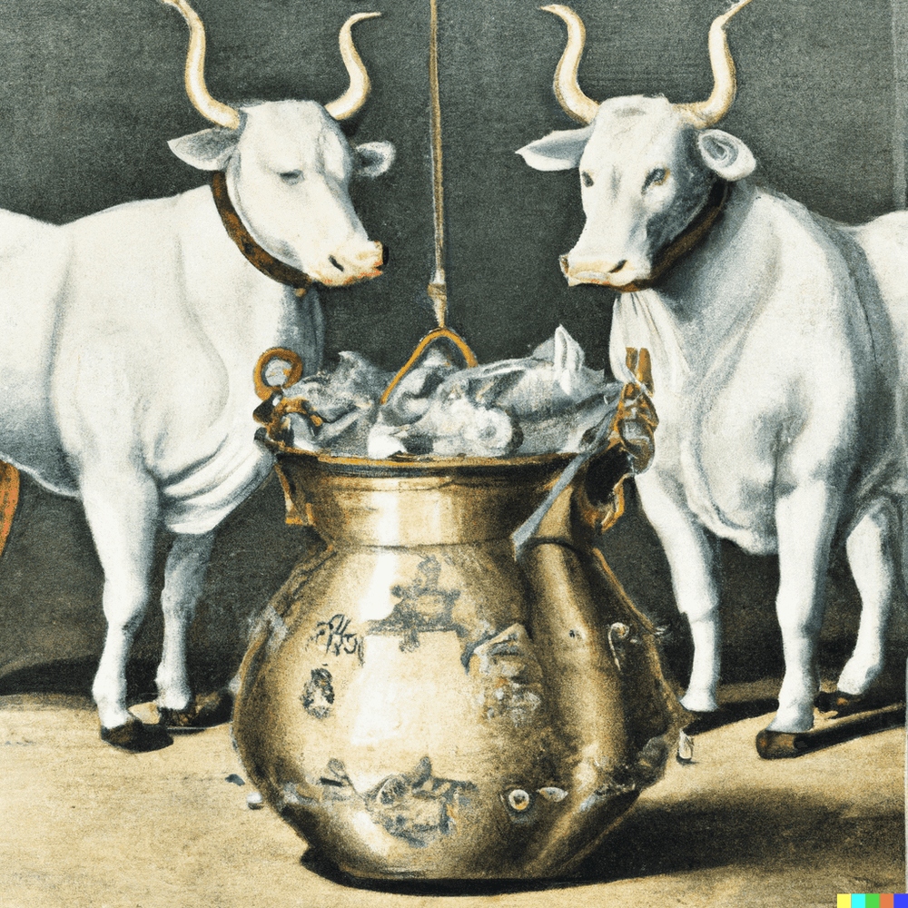 ”För att man skall kunna komma över skatten säges det att absolut tystlåtenhet från skattsökarnas sida är nödvändig, var jämte man måste medföra två vita tvillingoxar som äro födda på en söndag”, förklarar Erik Bergendahl.