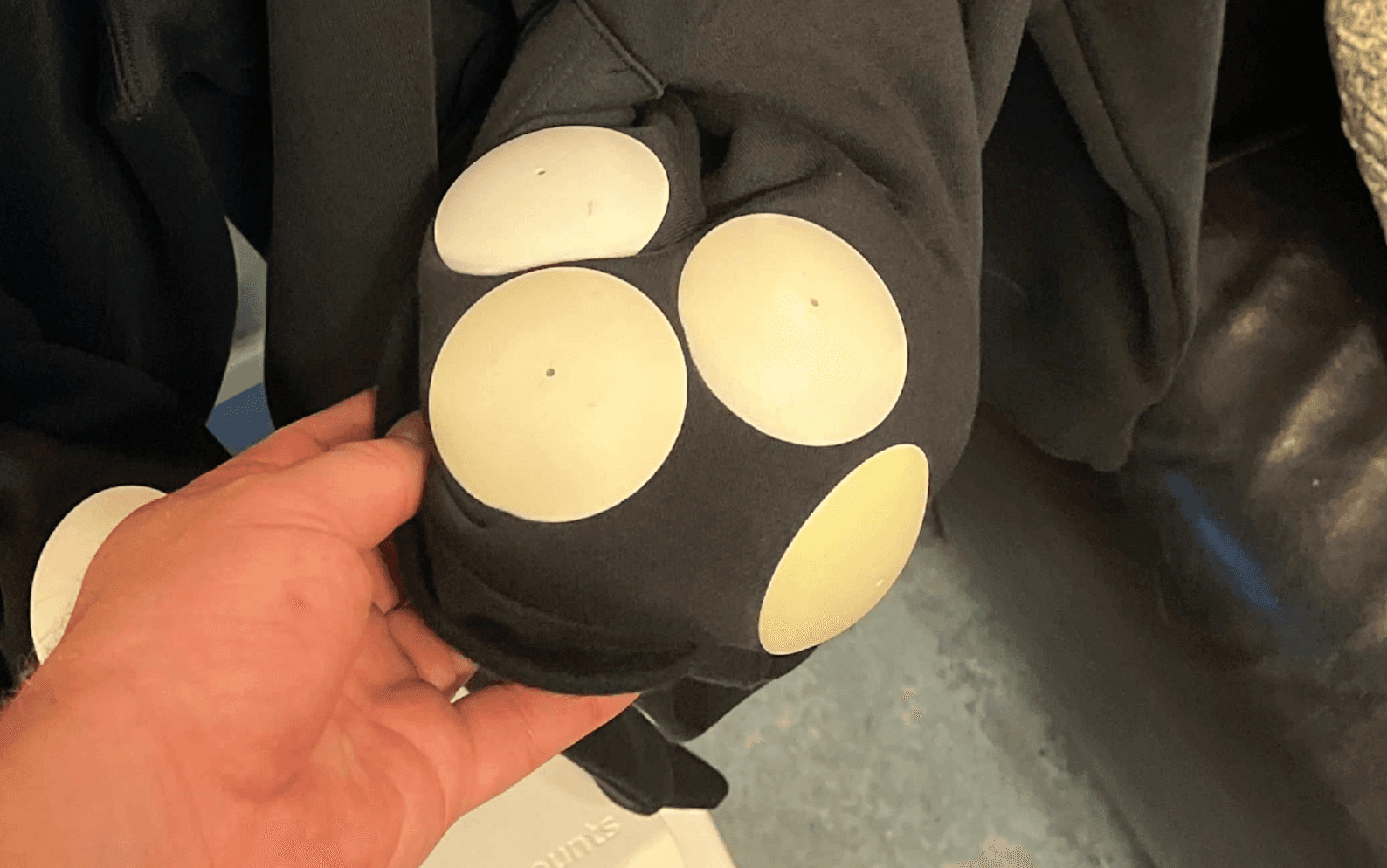 Mannen visar sig ha tagit med sig jackan och tröjan ut ur butiken utan att betala och inne i provrummet har han fäst de två larmen på ärmen på en luvtröja. Detta efter att han lyckats ta loss dem med hjälp av en medhavd magnet.